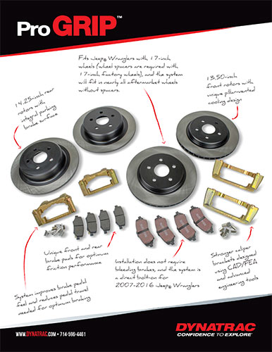 ProGrip™ Brake System for Jeep Wrangler JKDynatrac™ is setting a new standard in brake upgrades with the introduction of its ProGrip™ Brake System, designed to provide a significant braking improvement during off-roading and daily-driving experiences as well as in emergency stops. The first application of the ProGrip Brake Systems is the popular 2007-2018 Jeep Wrangler JK. Learn More